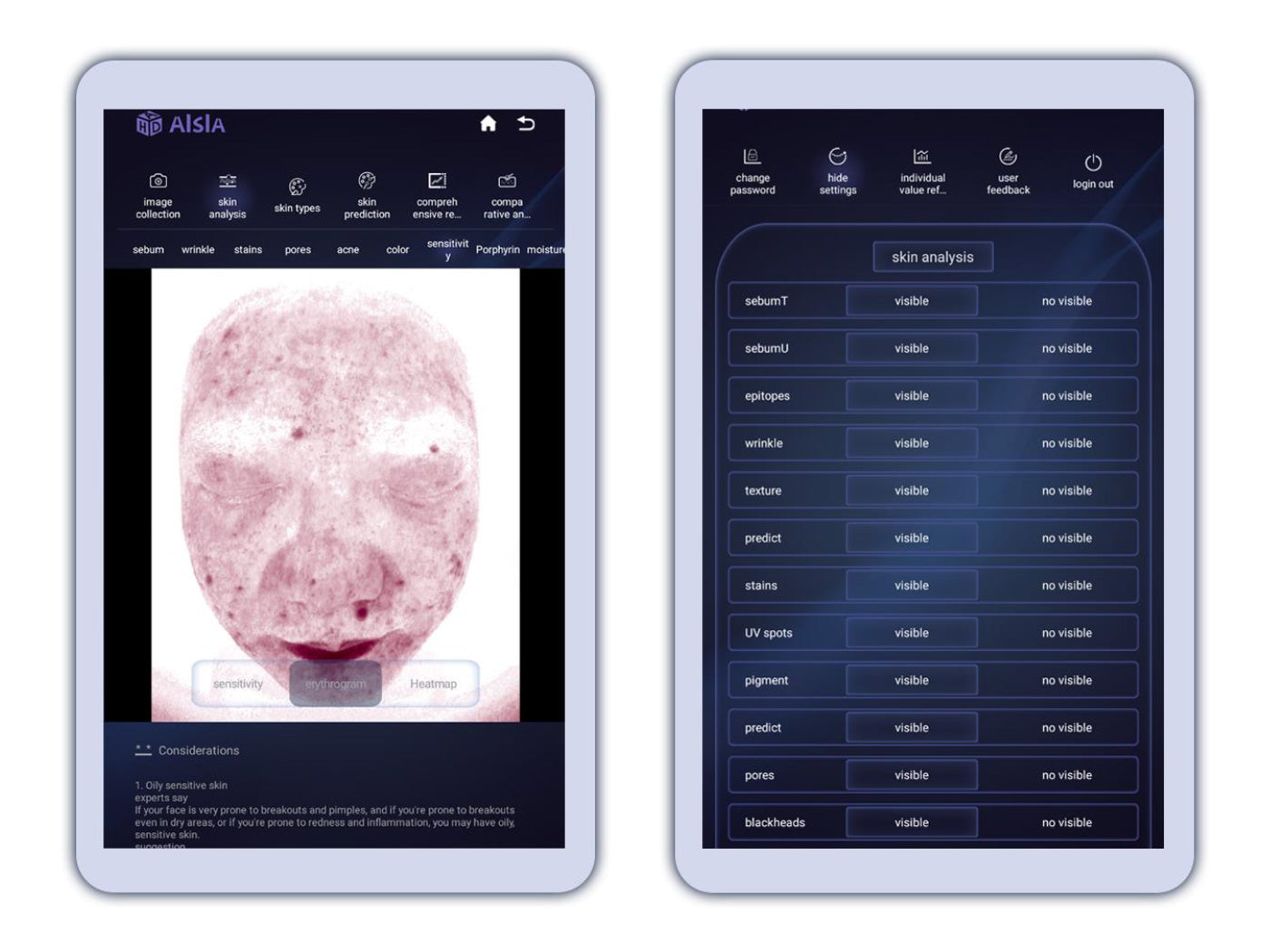 Urządzenie rejestruje obrazy w kilku zakresach światła, a następnie – z wykorzystaniem algorytmów komputerowej analizy obrazu – generuje czytelne, ilościowe raporty dotyczące kondycji skóry. Analizator skóry Oval umożliwia dokumentację stanu wyjściowego, monitorowanie zmian w czasie oraz wspiera proces konsultacji i doboru zabiegów pielęgnacyjnych.