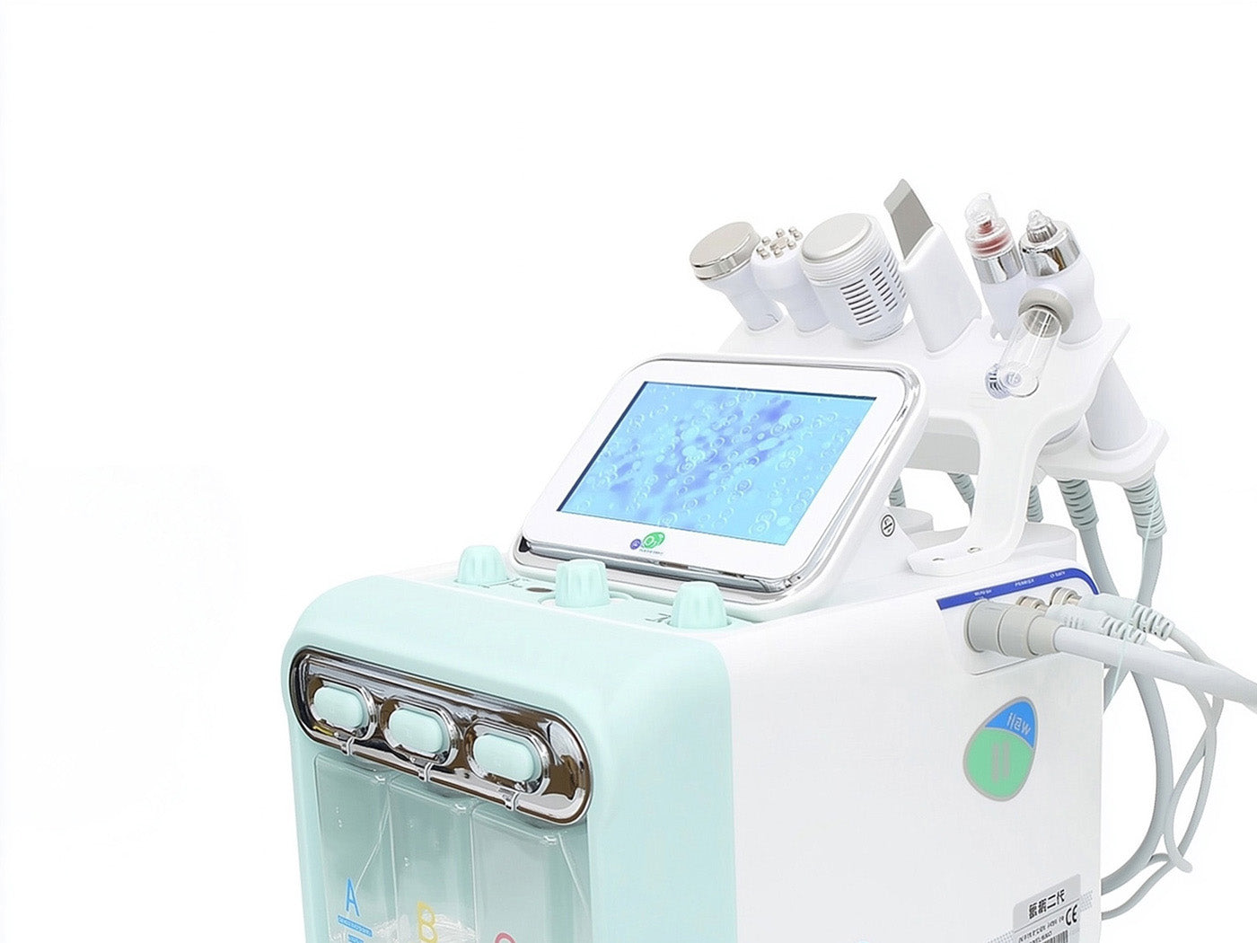 Urządzenie wyposażono w 8-calowy dotykowy ekran LCD zapewniający intuicyjną obsługę oraz płynną regulację parametrów zabiegowych. Cicha praca systemu i ergonomiczna konstrukcja sprzyjają komfortowi zarówno operatora, jak i klienta podczas codziennej pracy gabinetowej.