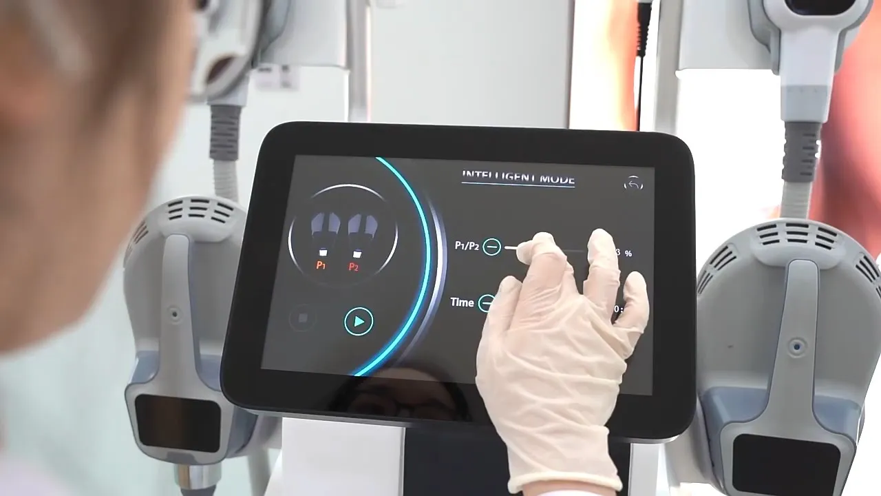 Ergonomiczne aplikatory wykonane z miękkiego, medycznego silikonu dopasowują się do naturalnych krzywizn ciała, zapewniając równomierny kontakt i bezpieczeństwo zabiegu. Zintegrowany ekran dotykowy 12,4” umożliwia precyzyjną kontrolę parametrów, a system chłodzenia powietrzem zapewnia stabilną pracę przez długie godziny.